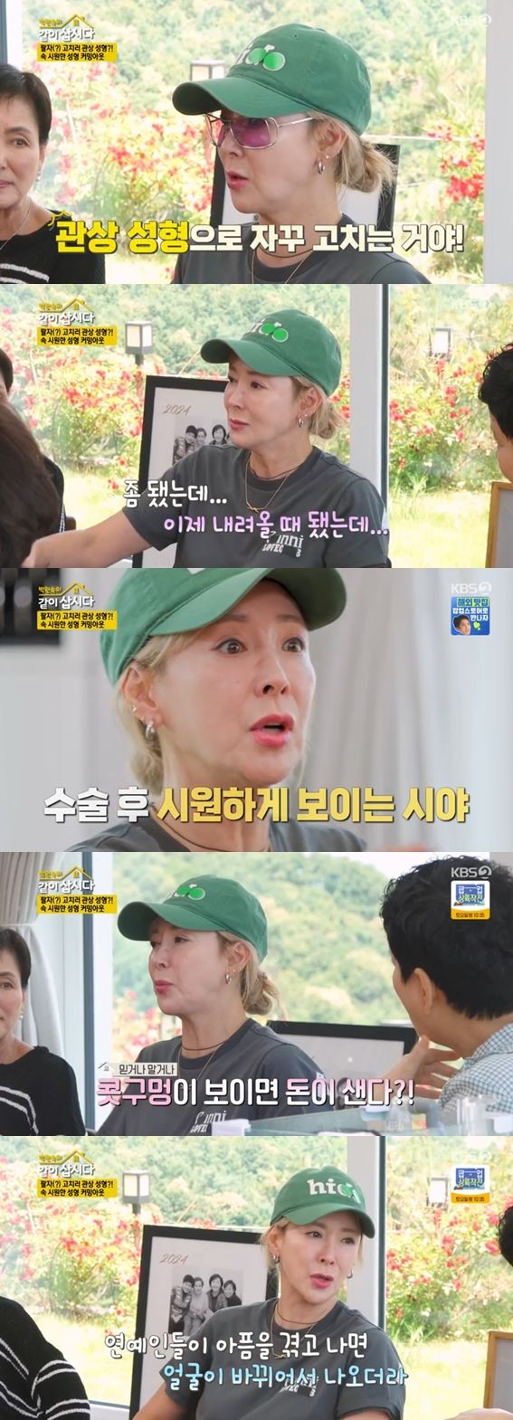 이어 선글라스를 벗은 이상아는 "눈도 동그래진 것 같다"는 말에 "눈도 수술했다. 너무 좋은 게, 상안검이라고 눈꺼풀이 처졌었는데 시원하게 보이더라"라며 만족해했다.