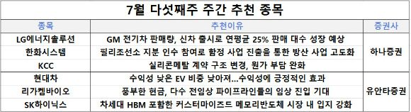LG에너지솔루션에 대해 하나증권은 "2분기 매출액 6조2000억원, 영업이익은 1953억원을 기록했다"며 "GM 전기차 판매량이 신차 출시로 연평균 25%의 판매 대수 성장이 예상된다"고 말했다.