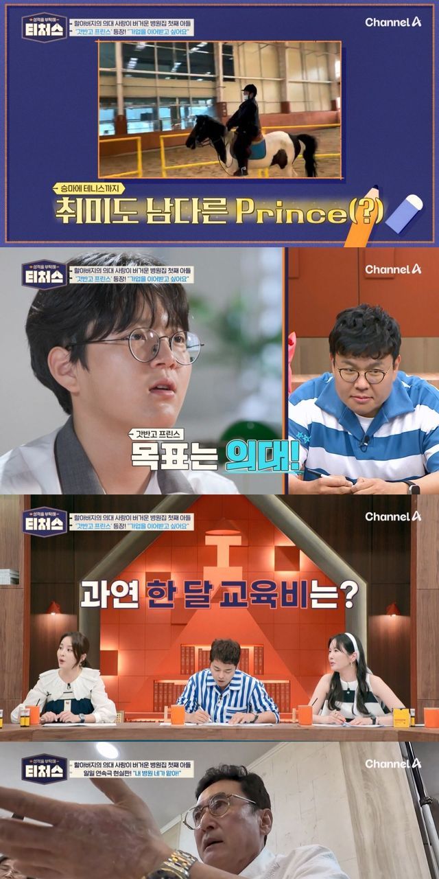 11일(일) 방송될 채널A ‘성적을 부탁해: 티처스’에는 승마와 테니스 등 각종 스포츠까지 모두 섭렵하고 ‘청춘 드라마’ 주인공 같은 풋풋함까지 갖춘 고1 도전학생이 찾아온다. 도전학생은 “제가 장남이고 가업을 이어받을 의사가 되고 싶다. 중학교 때는 ‘All A’였는데 고등학교에서는 안 먹히더라. 의대에 진학할 수 있을지 걱정이다”라고 고민을 전했다. 도전학생의 부모님은 모두 할아버지가 설립한 병원에 근무 중이었다. 때문에 도전학생은 어려서부터 자연스럽게 ‘의사’라는 장래 희망을 가지게 됐다.