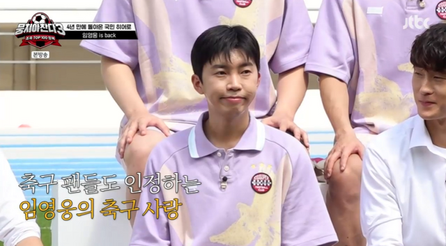 18일 오후 방송된 JTBC 예능 ‘뭉쳐야 찬다3’ 44화에는 임영웅이 4년 만에 자신이 만든 구단 ‘리턴즈 FC’ 선수들과 화려하게 돌아왔다.