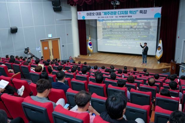 이 대표는 강의에서 △제주 관광데이터 컬러 맵(Color map) 구축 △관광객 피드백을 수집하는 인공지능(AI) 챗봇 시스템 개발 △제주도 명소 △문화재를 테마로 한 한정판 대체불가토큰(NFT) 아트 발행 등 제주관광 디지털 혁신 6대 추진 전략 및 18대 과제를 제시했다.