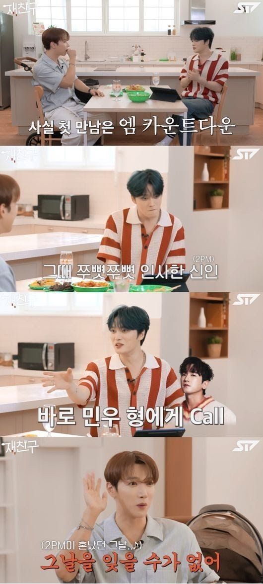 그는 “(2PM이) 우리 앞에서 쭈뼛쭈뼛 인사를 했다. 그래서 내가 좀 ‘아…’싶어서 민우 형한테 전화를 했다. 아마 그때 신화 이민우 형이 너희를 따로 불렀을거다”라고 말했다.