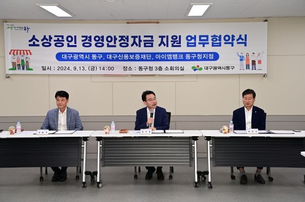 이번 업무협약은 경기침체와 고금리로 경영에 어려움을 겪고 있는 소상공인의 경영안정 도모 및 지역경제 활성화를 위해 마련됐으며, 협약에 따라 동구는 1억원의 출연금을 대구신용보증재단에 출연하고, 대구신용보증재단이 10억원 규모의 특례 보증을 지원하고, 대구은행 동구청지점에서 소상공인 경영안정자금을 융자해 주기로 했다.