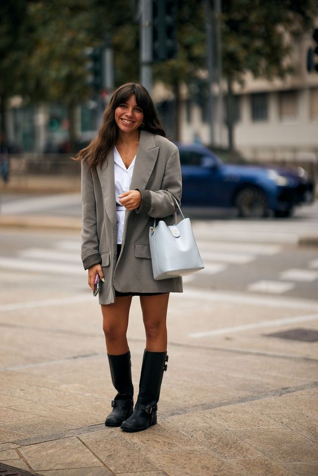 오버사이즈드 재킷은 미니스커트, 롱 부츠와 매치해보는 건 어떨까요? 트렌치코트와 레이어링 해 볼륨감을 더하는 것도 방법이죠.