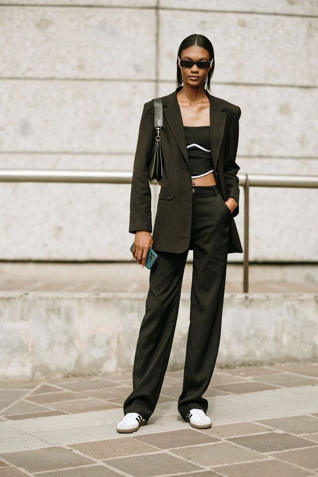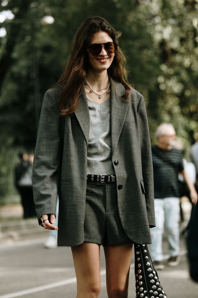 중성적인 무드의 블레이저는 페미닌한 아이템과