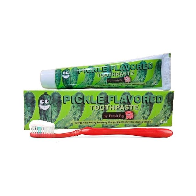 피클 주스를 사용해 만든 피클맛 치약. 피클 병을 열었을 때 나는 향과 맛을 그대로 담아낸 것이 특징입니다. 프레쉬 피그 제품.