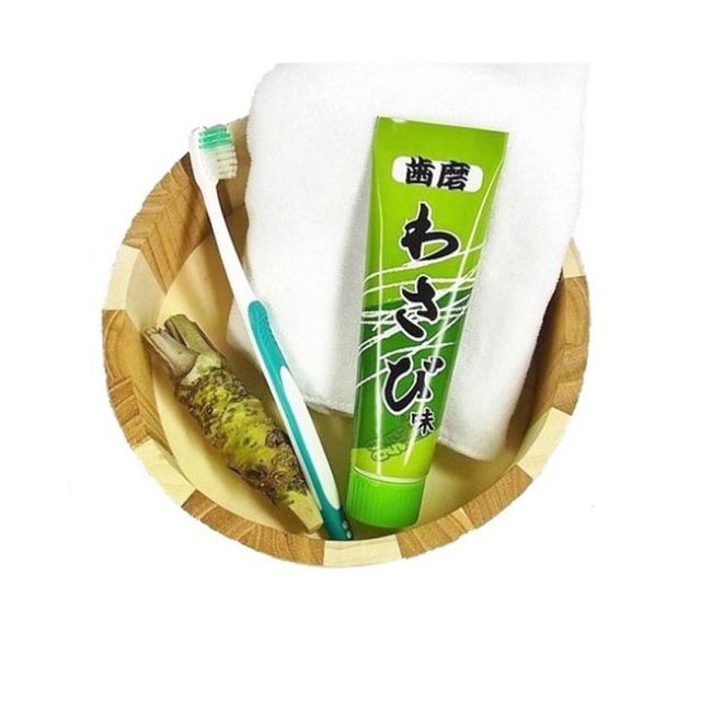 실제 고추냉이처럼 알싸하게 매운 와사비맛 치약. 참고로 와사비에는 구강 내 세균 증식을 억제해 주는 효과가 있어 충치 예방에 좋다고 해요. 빌리지 뱅가드 제품.
