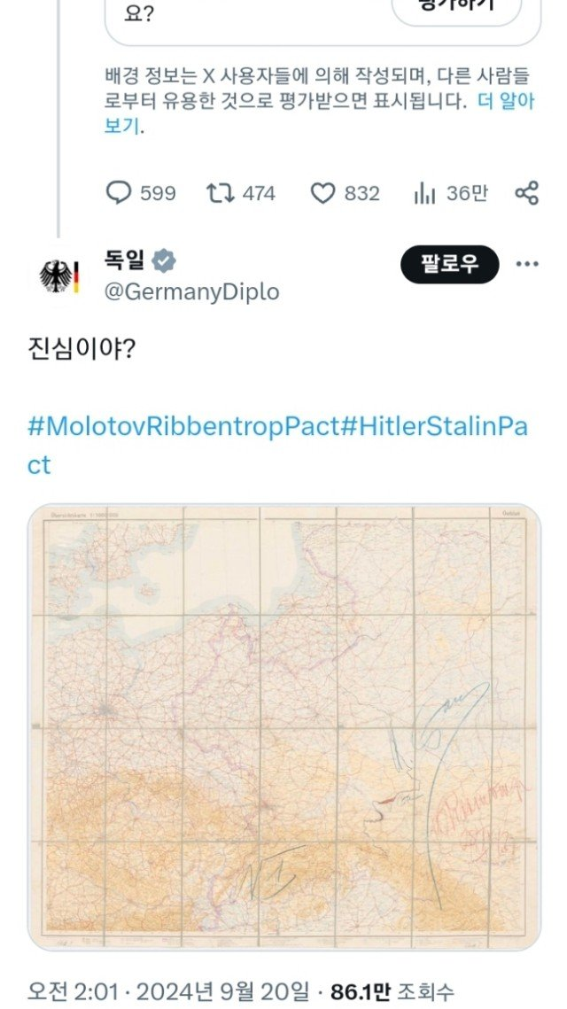 독일 외무부가 독소불가침조약 당시 폴란드 분할을 논의한 지도를 가져와 ''진심?''을 시전함....