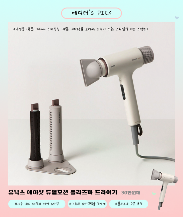요즘 에디터가 내돈내산한 아이템 중에 가장 마음에 드는 제품을 고르라면 단연 유닉스 듀얼모션! 그냥 질끈! 묶고 다니던 지난날과는 Bye bye~