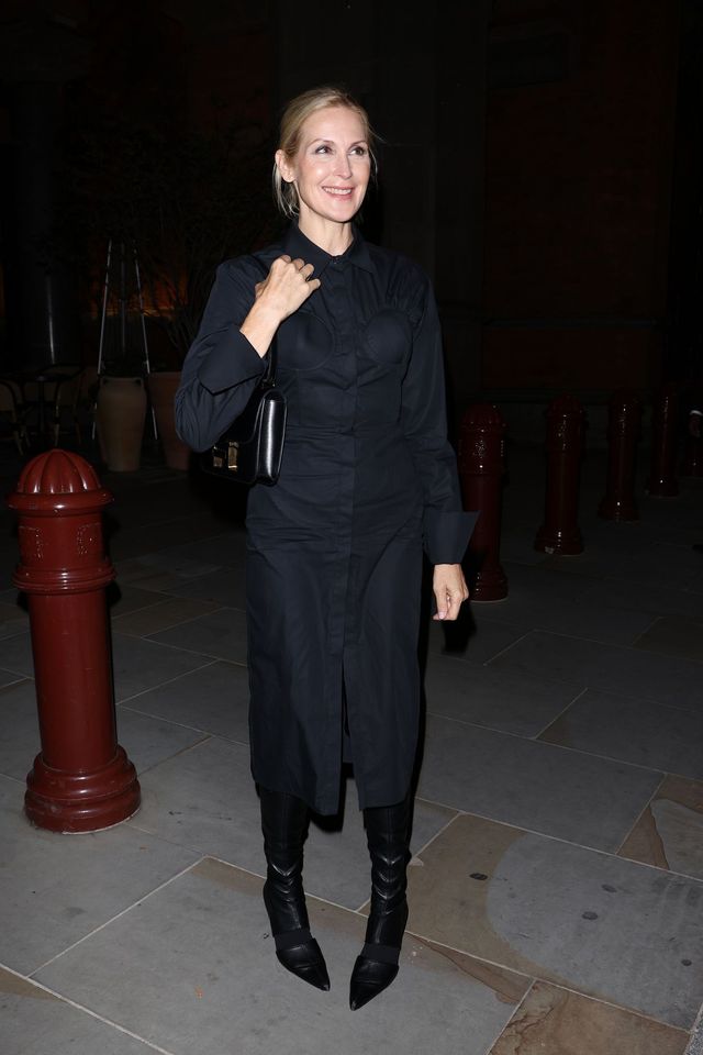 러더포드는 심플하면서도 강렬한 올 블랙 룩으로 낸시 도자카의 쇼장에 도착했습니다. 블랙 셔츠 드레스에 앞코가 뾰족한 부츠로 세련된 터치를 더해 그의 지적이고 모던한 분위기가 더욱 살아나죠. 꿀이 흐르는 듯한 금발 헤어도 더욱 돋보이고요. 형태가 잡힌 블랙 핸드백은 간단한 소지품을 챙기기에도 좋고, 전체적인 룩과도 조화를 이룹니다.