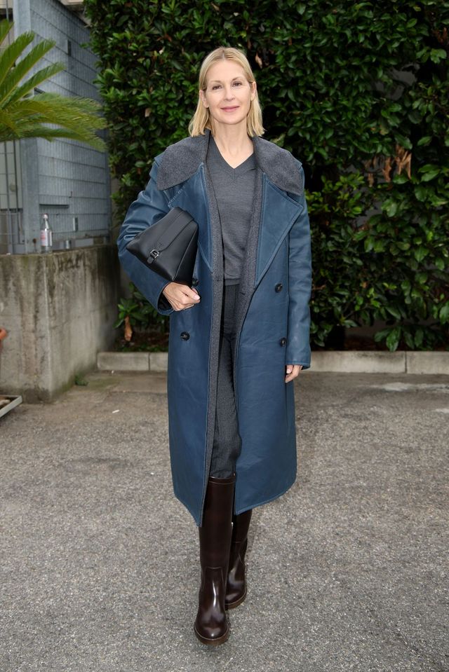 토즈의 패션쇼에 참석한 러더포드가 완벽한 가을 분위기를 소화했습니다. 안개처럼 부드럽고 부연 회색 컬러의 니트웨어와 팬츠에 커다란 라펠이 돋보이는 네이비색 트렌치코트를 매치해 환절기에 따라 입기 좋은 룩이 완성됐죠. 무릎까지 올라오는 롱 부츠는 편안하면서도 실용적인 아이템이니 여러분도 눈여겨보세요.