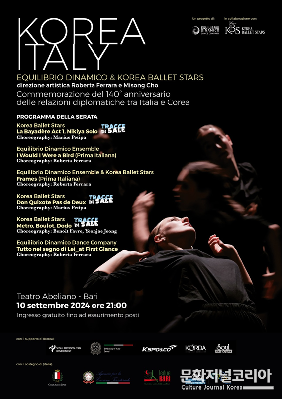 문화저널코리아 오형석 기자 | 창단 7주년을 맞는 코리아발레스타즈(단장 조미송)가 지난 9월 10일, 9시 이탈리아 남부 바리시의 아벨리아노 극장에서 에퀼리브리오 디나미코 무용단과 '한국과 이탈리아의 춤' 합동공연을 선보였다.