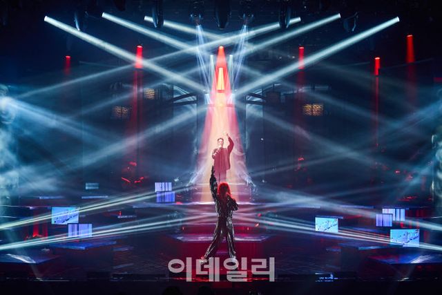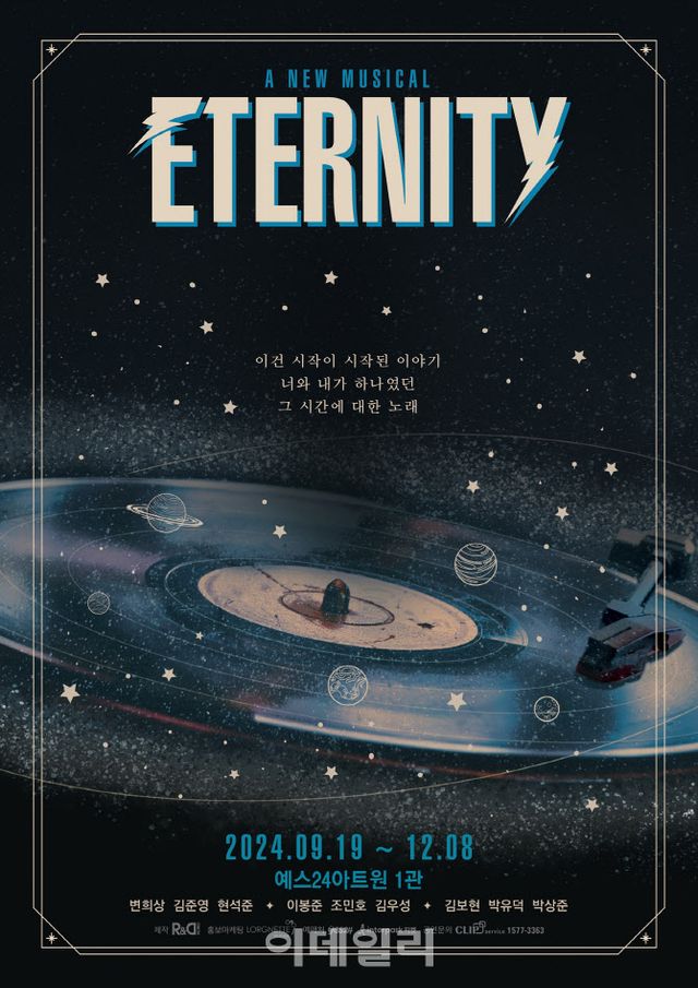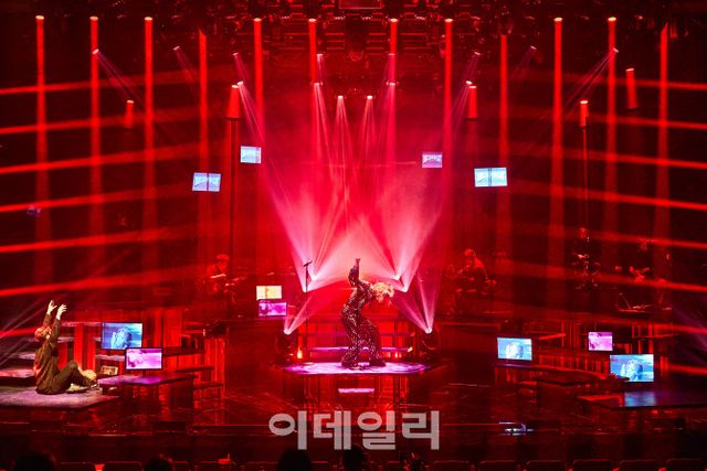 [이데일리 김현식 기자] 비디오아트를 활용해 우주 공간처럼 꾸민 신비로운 분위기의 무대. 1960년대와 2024년을 살아가는 두 명의 뮤지션이 격정적이면서도 애틋하고 감각적인 록 사운드에 맞춰 시공간을 초월한 감동의 무대를 선보인다. 26일 대학로 예스24아트원 1관에서 공연한 뮤지컬 ‘이터니티’에서 펼쳐진 장면이다.