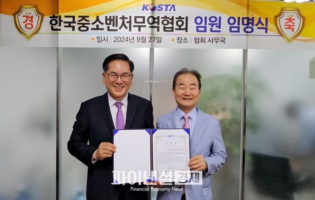 [파이낸셜경제=김예빈 기자] 한국중소벤처무역협회(KOSTA)는 9월 27일, 서울 상암동에 중소기업중앙회 협회 사무국에서 열린 임원 임명식을 통해 한국인터넷신문방송기자협회의 전병길 회장을 새로운 언론홍보위원장으로 공식 임명했다고 발표했다. 이 자리에는 협회의 주요 인사들이 대거 참석해 이번 임명을 축하했다.