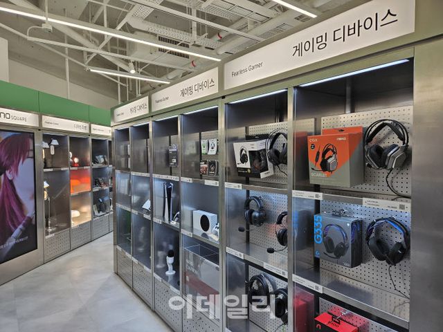 스퀘어를 기준으로 오른쪽 공간인 큐레이션 라이브러리엔 기존 하이마트에서 보기 힘들었던 소형 가전제품들이 자리하고 있었다. 1인용 식기세척기, 게이밍 기기, 카메라 등 MZ세대들의 수요가 높을 만한 제품들 중심이다. 하이마트 관계자는 “전체 판매 제품 중 30%을 신규 상품으로 바꿨다”고 말했다.
