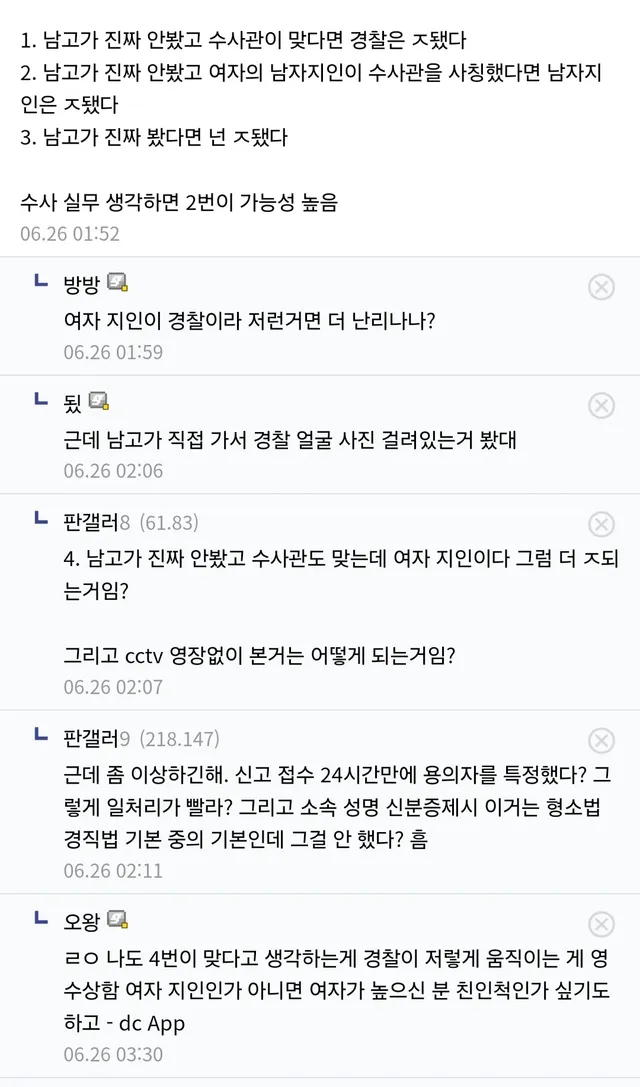 수사관 사칭 가능성도 존재함 이게 경찰이 억울한 유일한 경우의 수라고 본다
