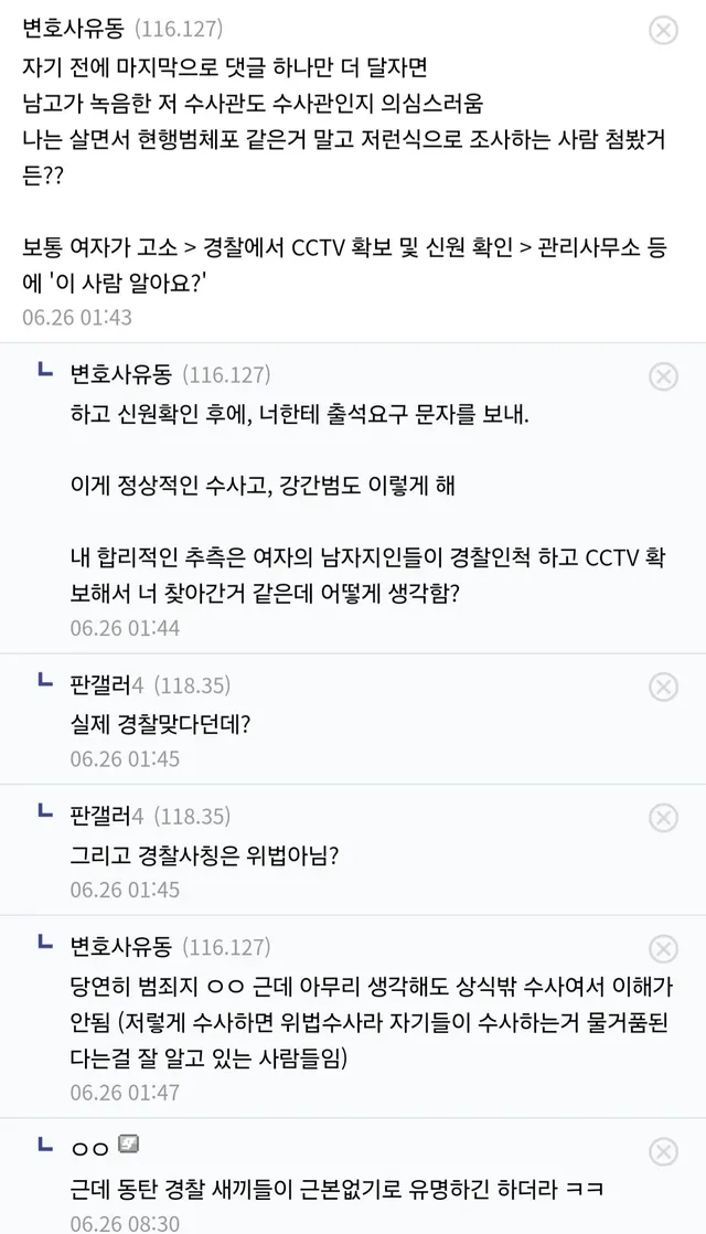 변호사도 경찰 측이 디씨인을 범죄자로 예단했다고 인정 하거 인권침해 수사라고 말함