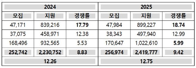 종로학원은 이러한 내용의 최근 5년(2021~2025학년도)간의 대입 수시모집 경쟁률 현황을 공개했다.