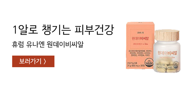 휴럼의 유나엔 원데이비씨알은 자기관리 끝판왕인 유튜버 유나가 개발에 참여한 피부 영양제로, 자외선에 의한 피부 손상으로부터 피부를 근본적으로 관리할 수 있게끔 도와주는 로즈마리자몽추출복합물을 포함, 비타민C, 비오틴, 판토텐산, 나이아신 등 8중 복합 포뮬러 제품이다. 1일 1회 1정만 챙겨주면 끝이니, 간편함까지 최고인 제품.