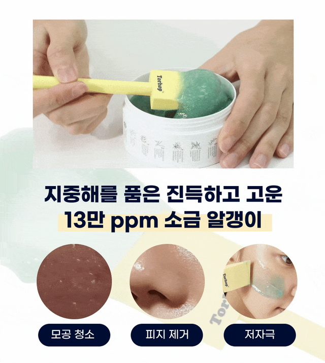 토르홉 온열 소금팩은 단 1회 사용만으로도 모공 속 피지가 깨끗하게 세정되고 모공의 부피, 깊이, 밀도, 개수, 면적이 감소되는 변화를 느낄 수 있는 제품! 이 특별한 포뮬러는 부드럽고 진득한 13만 ppm의 소금 알갱이들로 이루어져 있어 효과는 확실하지만 피부의 자극은 최소화한 기특한 제품이다.
