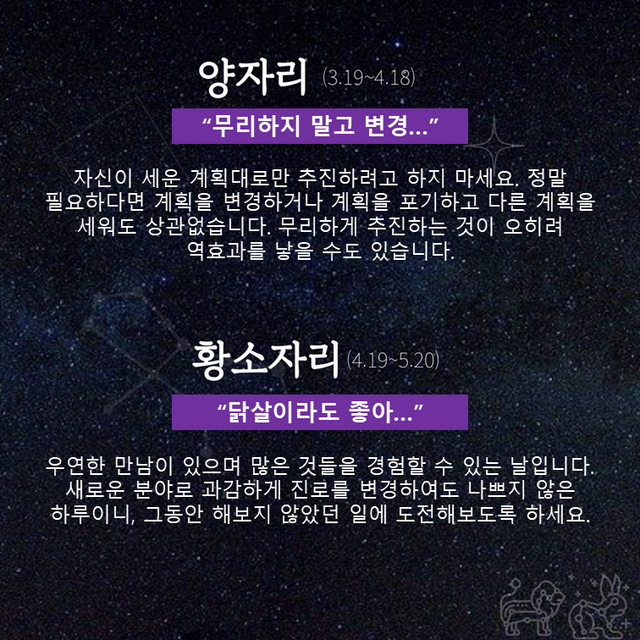 Δ 양자리 : 무리하지 말고 변경…