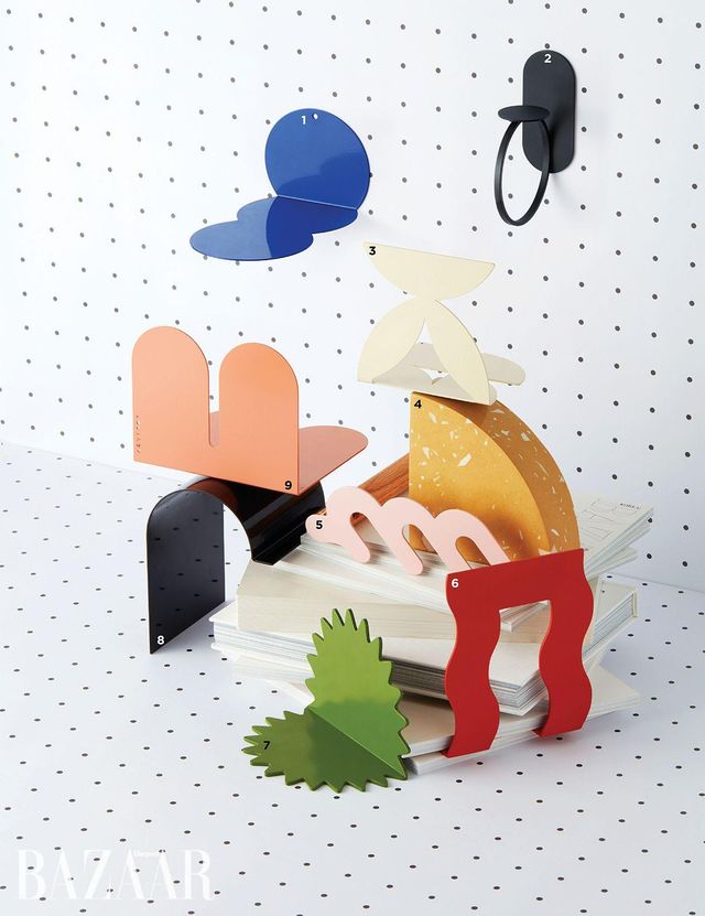 1 ‘스노우 맨’ 북엔드는 1만4천원 파운드파운디드. 2 ‘북 링’은 5만2천원 Cooee Design by 8colors. 3 한글과 기하학 도형을 조합한 ‘한옥체 패턴 북엔드 S’는 2만8천원 Kome. 4, 6, 7 대리석 모티프의 묵직한 북엔드는 6만9천원, 물결 모형 바인더, 그린 컬러 바인더는 각각 5만9천원 The Conran Shop. 5 우드 핸들이 조화로운 ‘드로잉’ 북엔드는 2만6천원 Uffia. 8 ‘벤 북엔드-써클’은 2만6천원 Rareraw. 9 ‘덤보 북엔드 M’은 5만9천원 Tortuga by The Conran Shop.