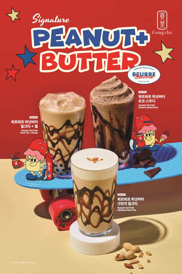 글로벌 티(Tea) 음료 전문 브랜드 공차코리아가 프리미엄 버터 아이스크림 브랜드 ‘뵈르뵈르(BEURRE BEURRE)’와 협업해 피넛버터 음료 3종을 출시하고, 이를 기념해 다양한 이벤트를 진행한다고 4일 밝혔다.