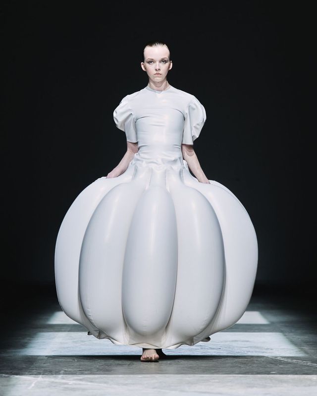 2023 브릿 어워즈에서 파격적인 패션으로 전 세계 이목을 집중시킨 샘 스미스를 기억하는가. 광택 가득한 라텍스에 공기를 주입해 독특한 실루엣을 실현했던 ‘그’ 피스 말이다. 혁신적인 기술로 끝없는 가능성을 이야기하는 맨즈웨어 디자이너 해리(HARRI)의 첫 여성복 컬렉션을 만나보자. 세상의 종말을 암시하는 어두운 공간에서 모습을 드러낸 실루엣은 미니멀리즘과 맥시멀리즘을 동시에 투영하며 이질적인 면모를 드러낸다. 전통과 경계를 허물고 새로운 방향을 탐닉하는 해리의 행보를 기대하도록.