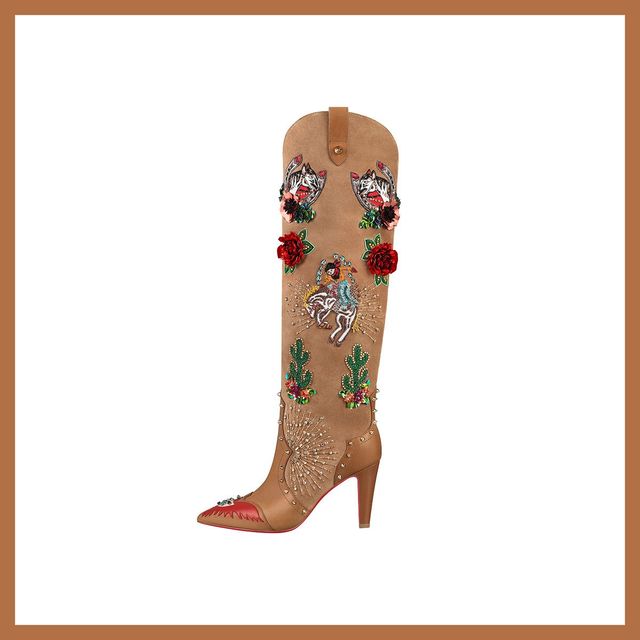 미국 서부에서 영감을 받은 산티아 보타 럭키 부츠는 크리스찬 루부탱의 독창적인 세계관이 담긴 특별한 제품입니다. 텍사스 로데오를 연상시키는 섬세한 자수 장식이 특징이며, 리미티드 에디션으로 제작되어 소장 가치를 더욱 높입니다.