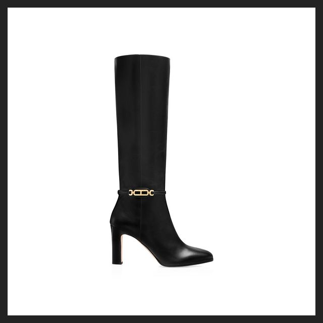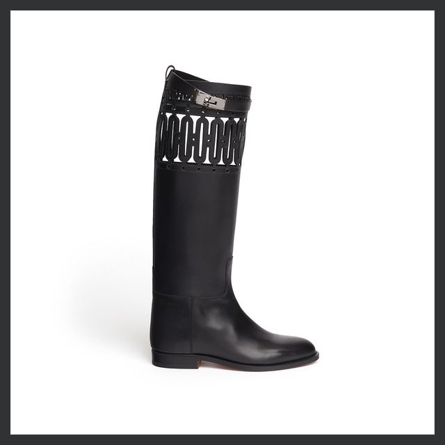 켈리 버클과 기하학적 패턴 커팅 디테일이 특징인 에르메스의 점핑 부츠. 낮은 굽의 편안한 착화감이 데일리로 활용하기 좋으며, 핏한 데님 팬츠와 매치하면 클래식하고 유니크한 가을 스타일을 연출할 수 있습니다.