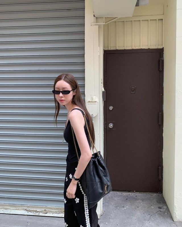 차정원이 입은 모든 룩은 따라 하고 싶을 만큼 극도로 세련되면서도 실용적이다. 기본적인 에센셜 아이템을 가장 트렌디하게 연출하는데 탁월한 능력을 지닌 차정원의 선택은 블랙 나시탑과 귀여운 단추 장식의 오버사이즈 팬츠. 여기에 숄더와 백팩으로 다양하게 연출할 수 있는 생 로랑의 골드 로고 장식 블랙백을 더해 그녀만의 감각이 빛나는 데일리 룩을 완성했다.
