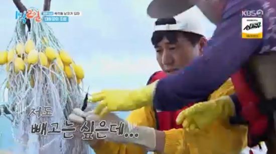 김종민과 유선호는 그물에 붙은 새우를 떼내는 작업을 시작했다.