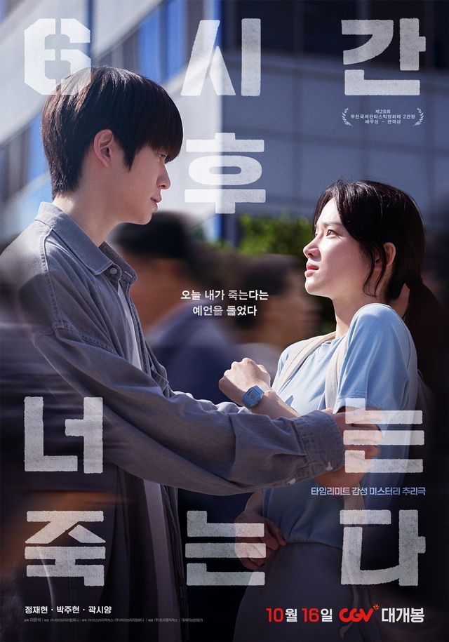 한편 ‘6시간 후 너는 죽는다’는 길을 걷다 죽음 예언자 ‘준우’(정재현 분)에게 6시간 후 죽게 된다는 말을 듣게 된 ‘정윤’(박주현 분)이 예견된 미래를 바꾸기 위해 범인을 찾아가는 타임리미트 감성 미스터리 추리극이다. 오는 16일 개봉.