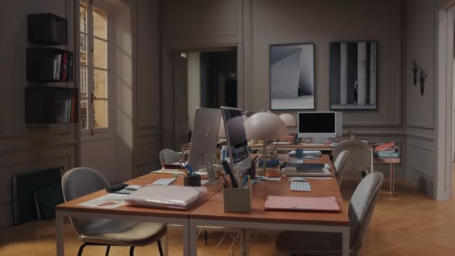 마케팅 회사 사부아르 사무실은 꼭 파리 아파트를 통째로 옮겨놓은 듯 합니다. 이는 세트 디자이너 앤 세이벨의 정확한 의도였죠.