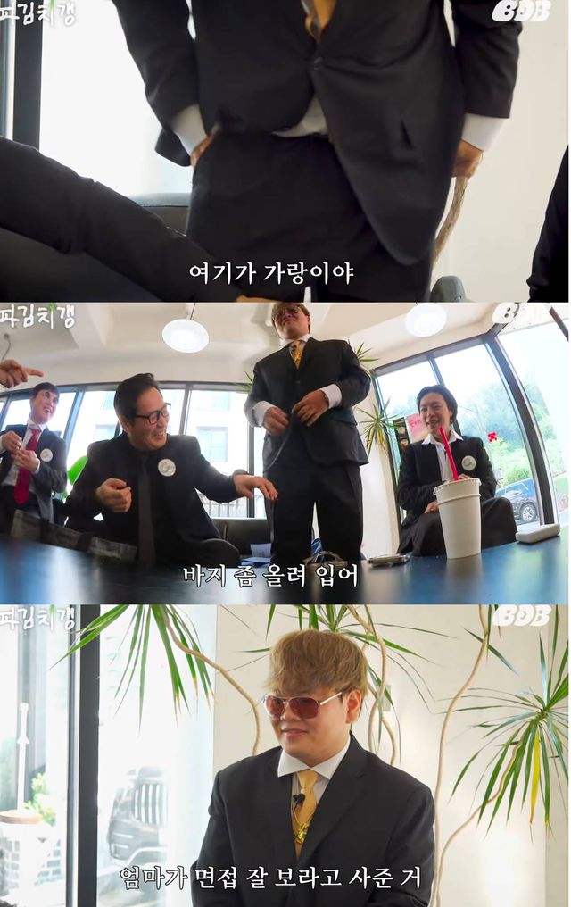 이후 정장으로 환복한 파김치갱 멤버들. 곽튜브는 바지가 헐렁한 듯 어정쩡한 핏을 보였고, 멤버들은 "지금 허리가 남는다"고 말했다. 곽튜브는 "왜 이렇게 큰 걸 샀냐"며 웃었다.