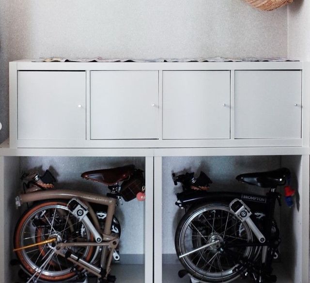 저와 남편, 아이 모두가 자전거 타는 걸 좋아해요. 그래서 자전거도 세 대 있는데요. 집 현관에 다 기대어 두니 문 열고 들어섰을 때 첫인상이 너무 복잡하고 지저분해 보이는 거예요. 그래서 모듈형 수납 캐비닛을 구매해 자전거 미니 창고로 활용해 봤어요. 자전거는 브롬톤인데요. 차에 싣고 떠날 수 있어서 브롬톤으로 장만했어요. 다 같이 한강으로 자전거 라이딩을 가려도 해도 차에 자전거 세 대를 실을 수가 없으니 아이 자전거만 싣고 저와 남편은 따릉이를 빌려 타곤 했었거든요. 이제는 다 싣고 훌쩍 나갑니다. 라이딩하기 제일 좋은 계절이잖아요!