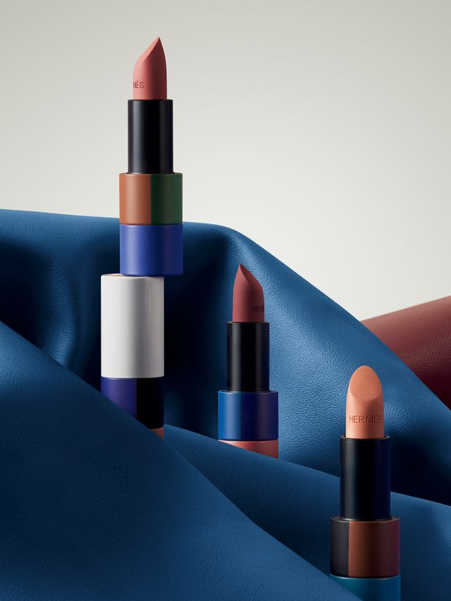 루즈 에르메스 리미티드 에디션 립스틱 트리오의 세가지 셰이드는 햇빛에 반짝이는 듯 섬세하고 투명한 피니시가 매력적인 화사한 베이지 컬러 03 베주 글라세, 벨벳을 연상시키는 매트 피니시와 자연스럽게 입술에 따스함을 전하는 23 베주 도블리스, 입술을 살짝 깨문 듯 생기를 더하고 와인빛 베일을 씌운 듯 차분한 깊이가 느껴지는 은은한 레드 컬러의 73 루즈 나파로 구성되었습니다.