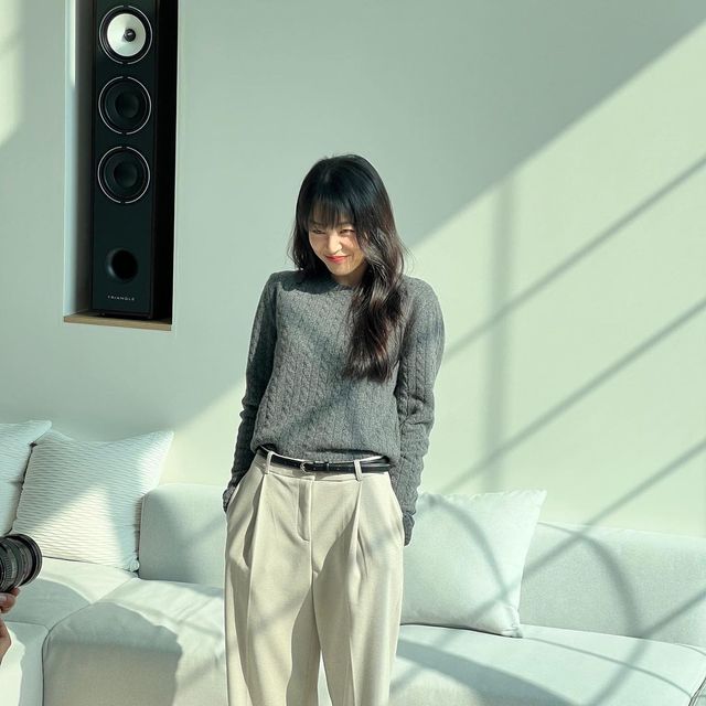가을 룩의 정석이라 할 수 있는 니트와 슬랙스 팬츠의 조합을 선보인 이주명. 섬세한 케이블 디테일의 짜임이 포근한 분위기를 전하며, 부드러운 소재의 베이지 핀턱 슬랙스로 클래식한 데일리 룩을 완성했다. 얇은 두께의 블랙 벨트를 매치해 볼드한 액세서리 없이도 완성도 높은 스타일을 선보였다. 요즘 같은 날 참고하기 딱 좋은 그레이 니트 룩 완성!