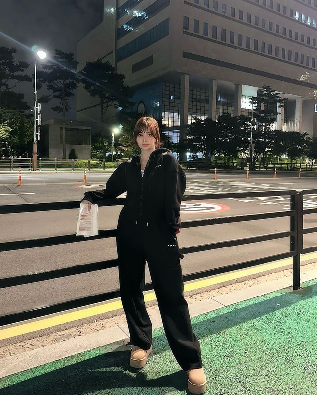 특히 발끝에 착용한 독특한 플랫폼 슈즈가 눈에 띈다. 편안함을 추구하는 듯하면서도 그녀의 힙한 스타일을 한층 업그레이드 시켜주는 요소다. 이 슈즈는 무심한 듯 매력적인 스트리트 패션의 완성도를 높여주며, 한보름 특유의 패션 감각을 드러냈다.