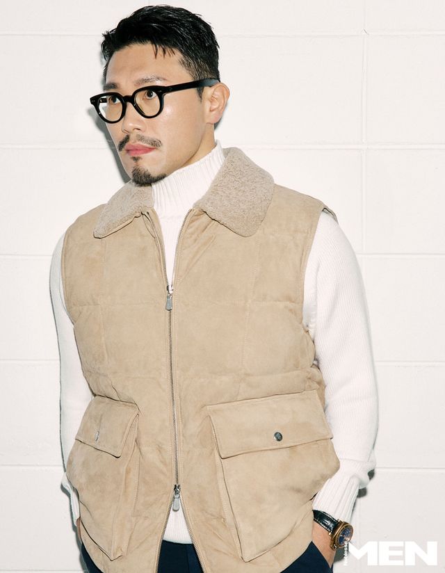 균형과 조화를 중요시하며, 평소 건축에서 곡선적 요소를 강조한다. 시각적 아름다움과 공간에 유연성, 생동감을 주기 위함이다. 옷도 마찬가지다. 불필요한 장식을 더하거나 과도한 레이어링보다 옷 본연의 아름다움을 드러내는 스타일링을 선호한다. 오늘 입은 일레븐티 양가죽 베스트는 스웨이드 질감에도 불구하고 편안하고 고급스럽다. 의도하지 않아도 자연스럽고 부드러운 분위기를 연출한다. 캐주얼한 디자인이지만 소재 덕분에 평소 자주 입는 포멀한 룩과 매치하기에도 좋을 것 같다.