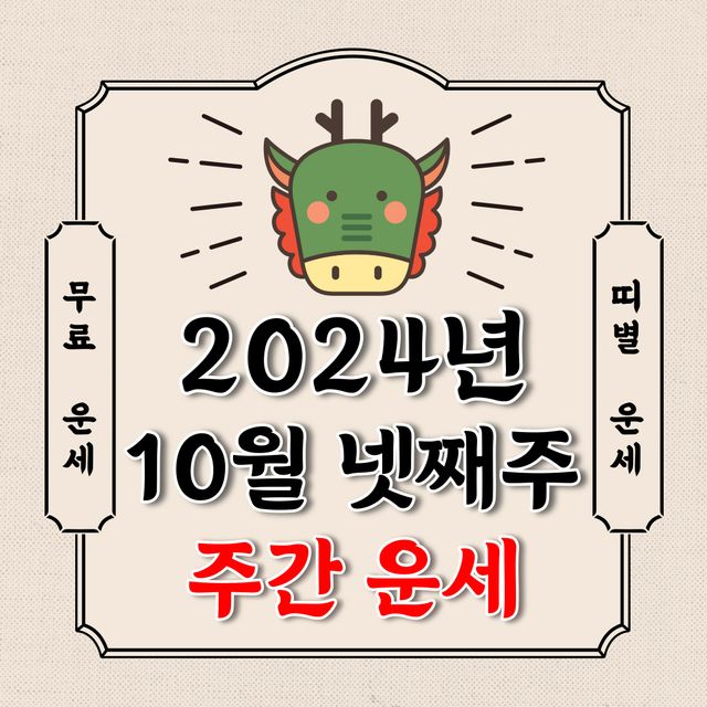 오늘의 운세 2023년 10월 넷째주 2024년 10월 21일~2024년 10월 27일(음력 9월 19일~9월 25일 / 주간 운세 / 생년월일 운세)에 대해 알아 보겠습니다.