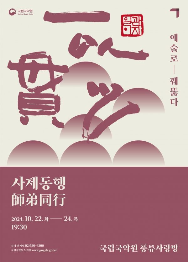 국립국악원이 오는 22일부터 24일까지ᅠ총 3회에 걸쳐 국립국악원 풍류사랑방에서 '일이관지-사제동행'을 개최한다.