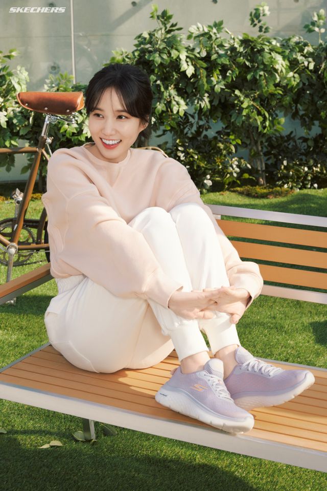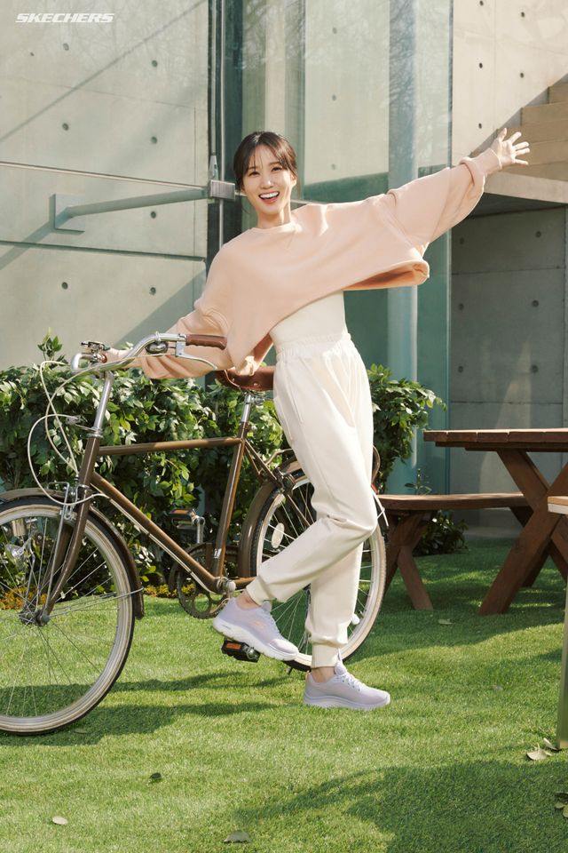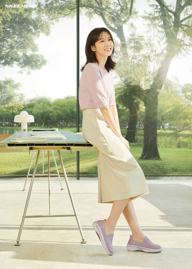 레드 체크와 고전적 우아함의 조화, 권은비의 성숙한 페미닌 룩