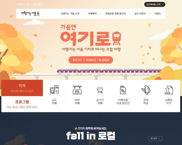 또한 24개 소도시로 떠나는 당일 기차여행 ‘가을엔 여기로’를 8차례 운영해 1인당 4만 9000원으로 교통부터 식사, 관광지 입장까지 한꺼번에 제공한다.