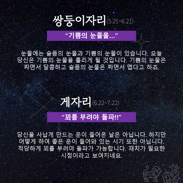 Δ 쌍둥이자리 : 기쁨의 눈물을…