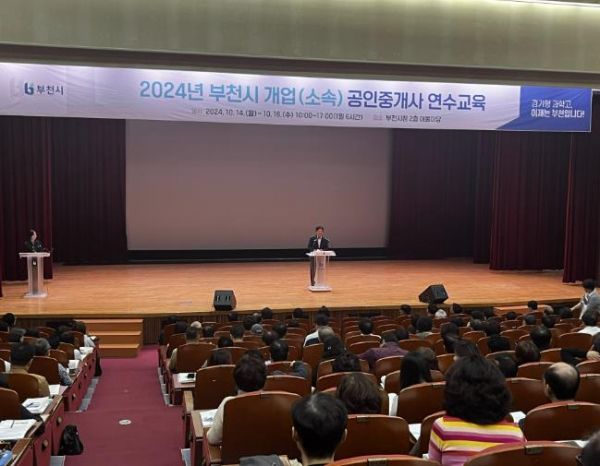 [한국미디어뉴스통신 박말희 기자] 부천시는 지난 14~16일 시청 어울마당에서 공인중개사의 업무 역량 강화와 서비스 향상 및 전세 사기 피해 예방 등을 위한 ‘2024년 개업(소속)공인중개사 연수교육’을 진행했다.