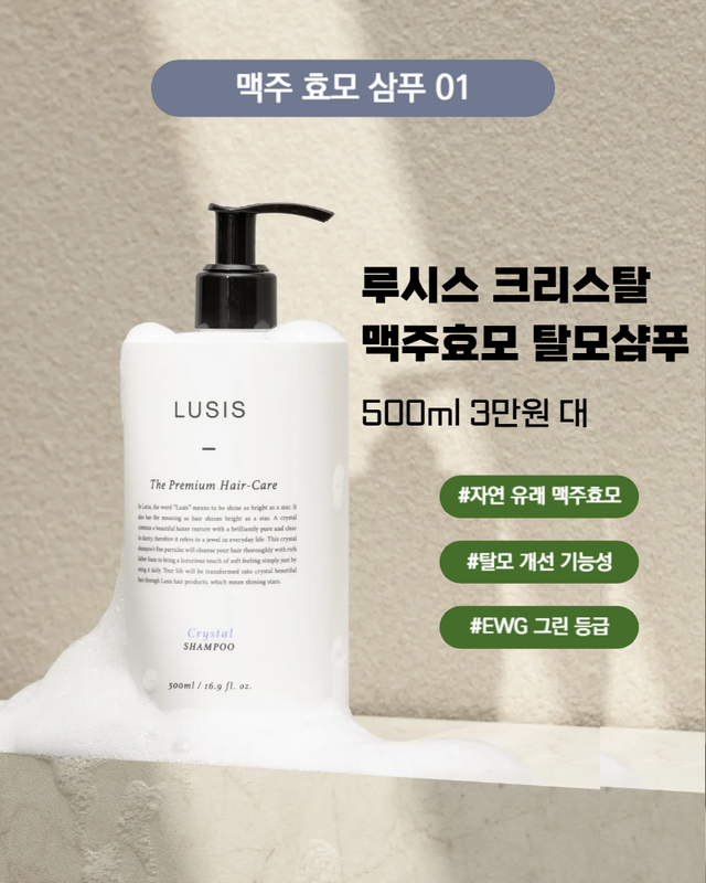 오늘 고른 맥주 효모 샴푸들 중에서 가장 만족스러웠던 사용감으로 에디터의 손길을 사로잡았던[루시스크리스탈 맥주효모 탈모샴푸]를 추천하며 글을 마무리한다.