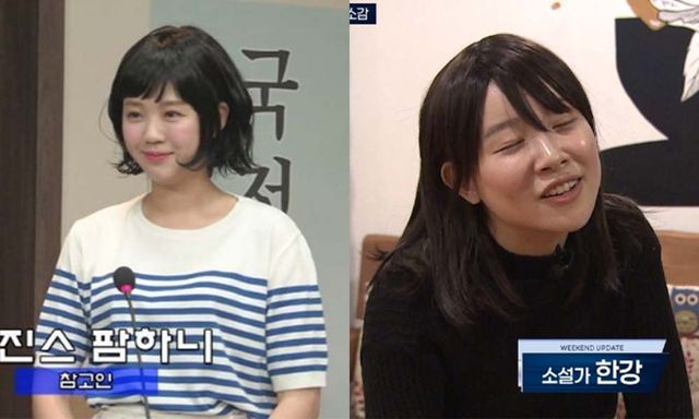 SNL 코리아의 개그 소재는 노벨상을 수상한 한강 작가까지 이어졌다. 배우 김아영은 한강 작가의 수상소감을 재현했다. 그는 “수상을 알리는 연락을 받고는 처음엔 놀랐고, 전화를 끊고 나서는 천천히 현실감과 감동이 전해졌다”고 대답했으나 다소 움츠린 자세와 나긋한 말투를 강조했고 실눈을 뜬 채 연기했다. 이는 한강 작가의 “외모와 목소리를 조롱했다”며 논란을 키웠다.