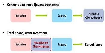 한편 ‘전체선행 항암·방사선 치료(TNT; Total Neoadjuvant Therapy)’란 수술 전에 항암치료와 방사선치료를 모두 시행하는 것으로, 기존의 수술 전 방사선치료에 비해 치료의 순응도가 높고 남아있는 종양이 없는 상태인 ‘완전관해율’이 높다는 장점이 있다.