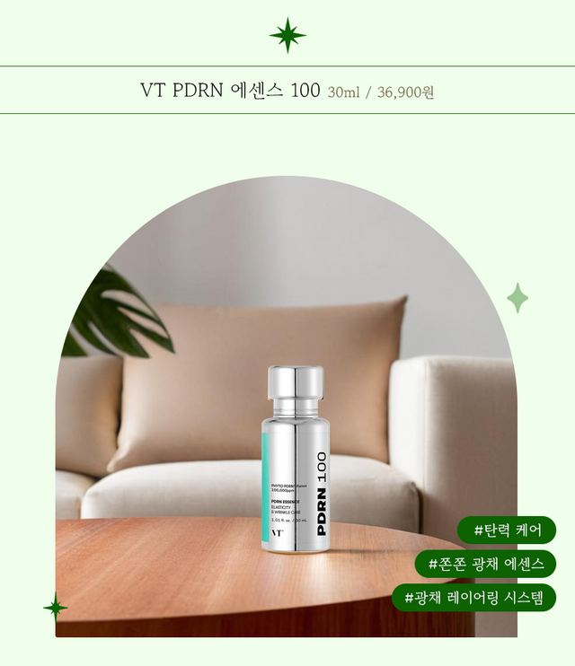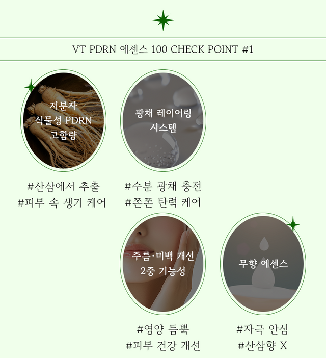 이 제품은 독특한 게 식물성 PDRN이 들어있는데 식물성 PDRN은 저분자이기 때문에 피부 속 깊은 곳까지 침투하여 피부 속부터 차오르는 광채 피부를 가꾸는 데 도움을 준다. 또한 VT만의 광채 레이어링 시스템으로 쫀쫀하고 탄력 있는 물광 피부를 가꿀 수 있다.